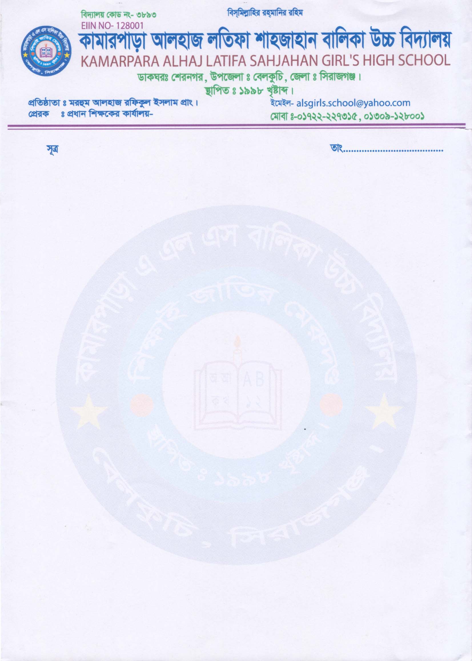 EIIN : 128001 School Code : 3893